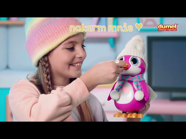 Mały pingwinek potrzebuje Twojej pomocy! Wyczyść go, ogrzej i nakarm, aby poczuł się szczęśliwy, a jego serduszko się zaczerwieniło. Zwierzątko wyraża swoje emocje, zmieniając przy tym kolor serca i wydając różne dźwięki. Pingwinek potrafi się cieszyć, być głodny, szczęśliwy, zmarznięty, smutny i śpiący. Odkryj jego potrzeby i spełnij je, wykorzystując do tego znajdujące się w zestawie akcesoria: szmatkę, zabawkową rybkę oraz ubranko.