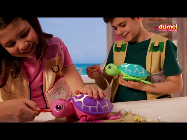 To urocze zwierzątko potrzebuje Twojej pomocy! Spraw, aby żółwia mama poczuła się dobrze, spełniając jej potrzeby. Kiedy wydobrzeje, magicznie złoży jajka z małymi żółwikami! Zabawka świeci, wydaje dźwięki i reaguje aż na 10 różnych sposobów. W zestawie, poza dużym żółwiem, znajdziemy jajka z małymi żółwikami, gniazdo, pokarm i serduszko. Zabawka zasilana jest bateriami.