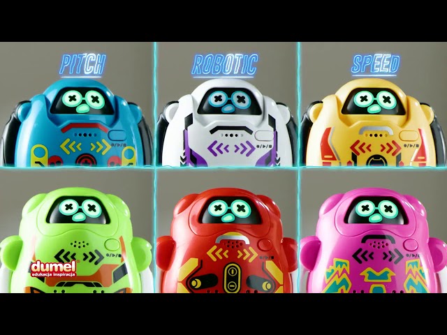 Talkibot to sprytny robot, który potrafi słuchać i powtarzać to co mu powiesz!. Wystarczy nacisnąć przycisk i powiedzieć coś do niego, aby odtworzył to na 3 różne sposoby! Aby zmienić głos robota, przekręć jego oczy. Możesz nagrać aż do 100 sekund i sterować tempem odtwarzania dźwięku, przesuwając palcem po strzałkach znajdujących się na brzuchu zabawki. Talkibot posiada ruchome rączki i nóżki. Produkt występuje w dwóch wzorach i kilku kolorach do wyboru.
